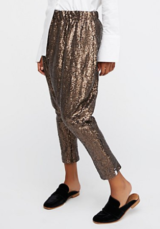 Harem pants are a gift in the winter when your legs are freezing but other pants are too constricting. These are your new party pants.